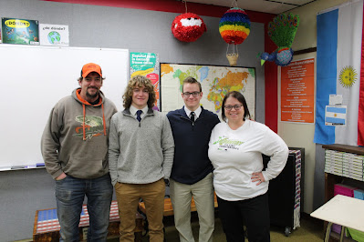 On Presentation Day, the senior class was broken into 10 groups with 6 in each group to present in an assigned classroom at the high school. There were a panel of 3 judges in each room (the same judges who graded their binders also graded their presentations), and classmates, friends, and family were also invited to watch. Each student had to create a PowerPoint presentation (in advance), and then use the PowerPoint to give an oral overview of their project and self-evaluate their work with a verbal presentation that had to last between 10-12 minutes, with a question and answer session that followed. Thankfully, Jonah and Micah were both assigned to the same classroom: Mrs. Bellamy's Spanish room. Jonah's presentation was before Micah's. It started at noon on Friday the 21st, and lasted about an hour and a half. It was such a neat experience listening to the seniors give their presentations, and learning about all the cool things that they were able to do!